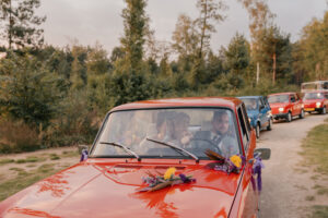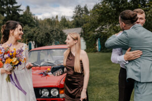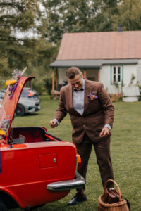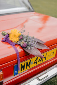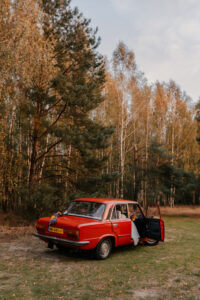 Jakby to napisać… z tymi ludźmi był po prostu OGIEŃ. Sama nie dowierzam, jak plotą się losy moje, Wasze, nasze. I nie tylko ludzkie! Czy wiecie, że czerwony, duży Fiat ze zdjęć, którym ta cudowna dwójka pojechała do ślubu, był kiedyś bohaterem moich sesji świątecznych? 🙂 Ponadto, żeby było zabawniej, jego poprzednią właścicielką była moja koleżanka. Podróżowałyśmy razem żukiem po Ameryce Południowej. Tu poczytacie o tej podróży więcej 🙂