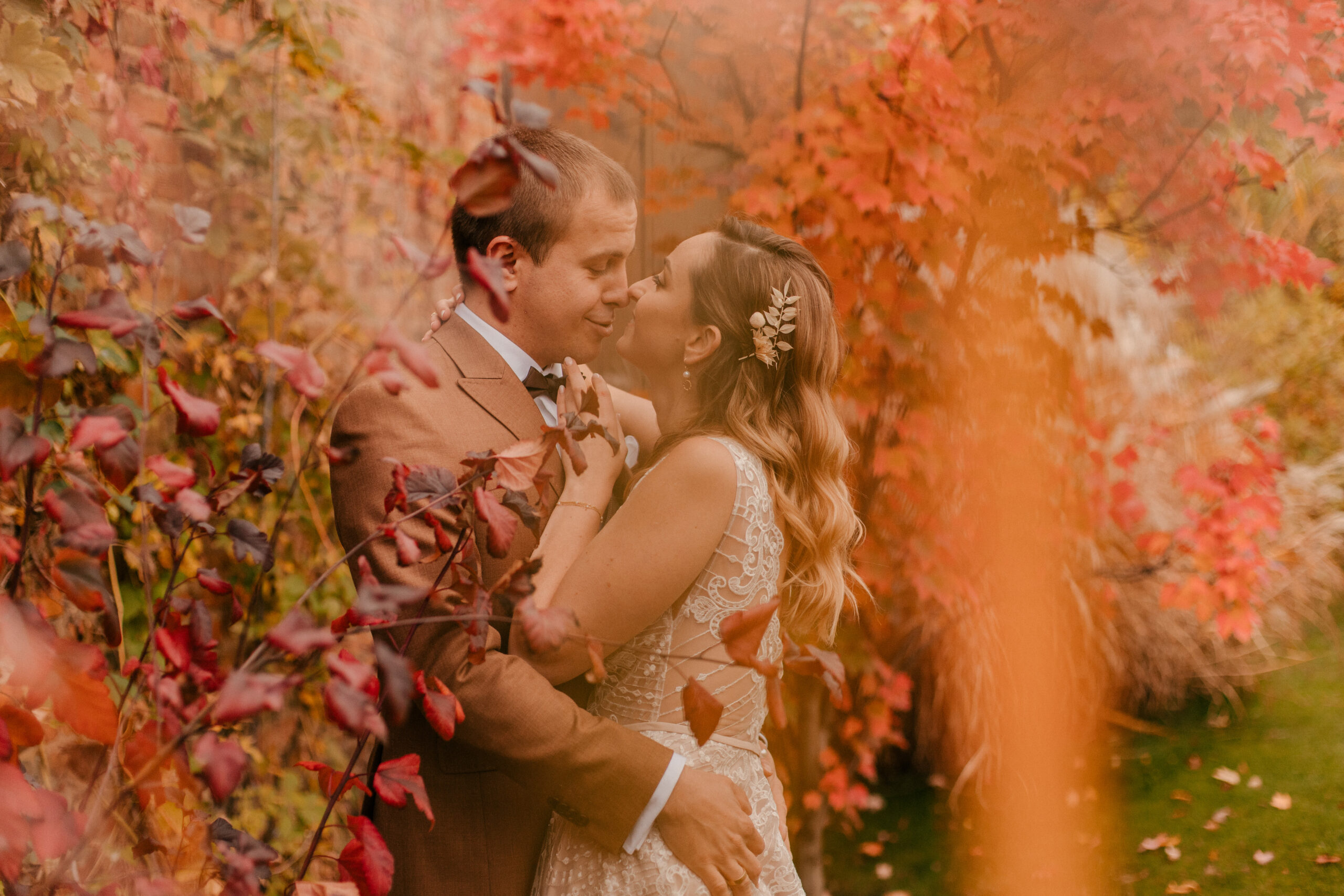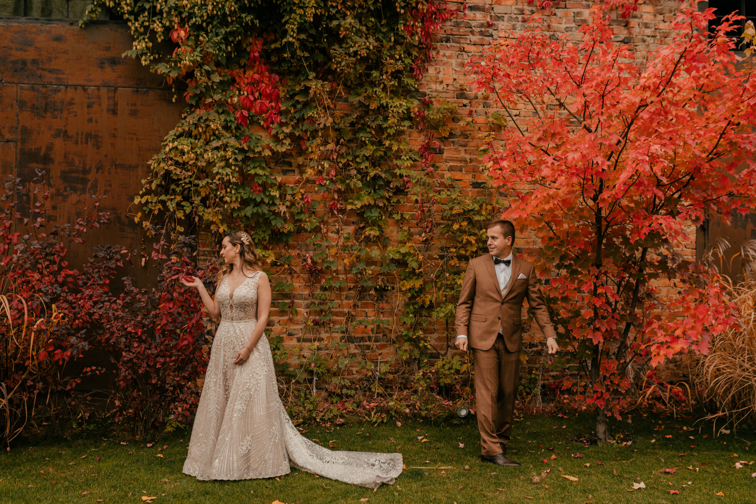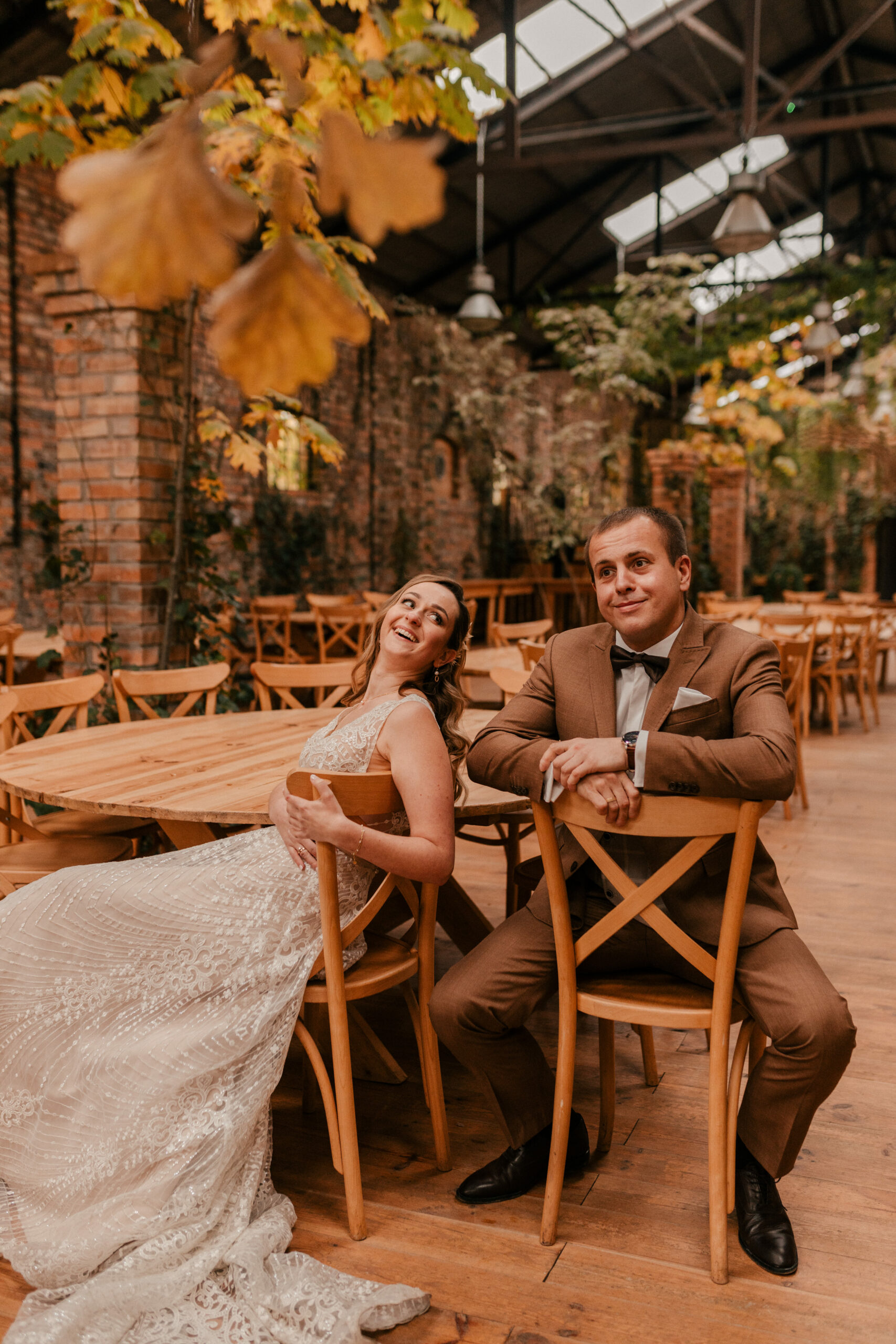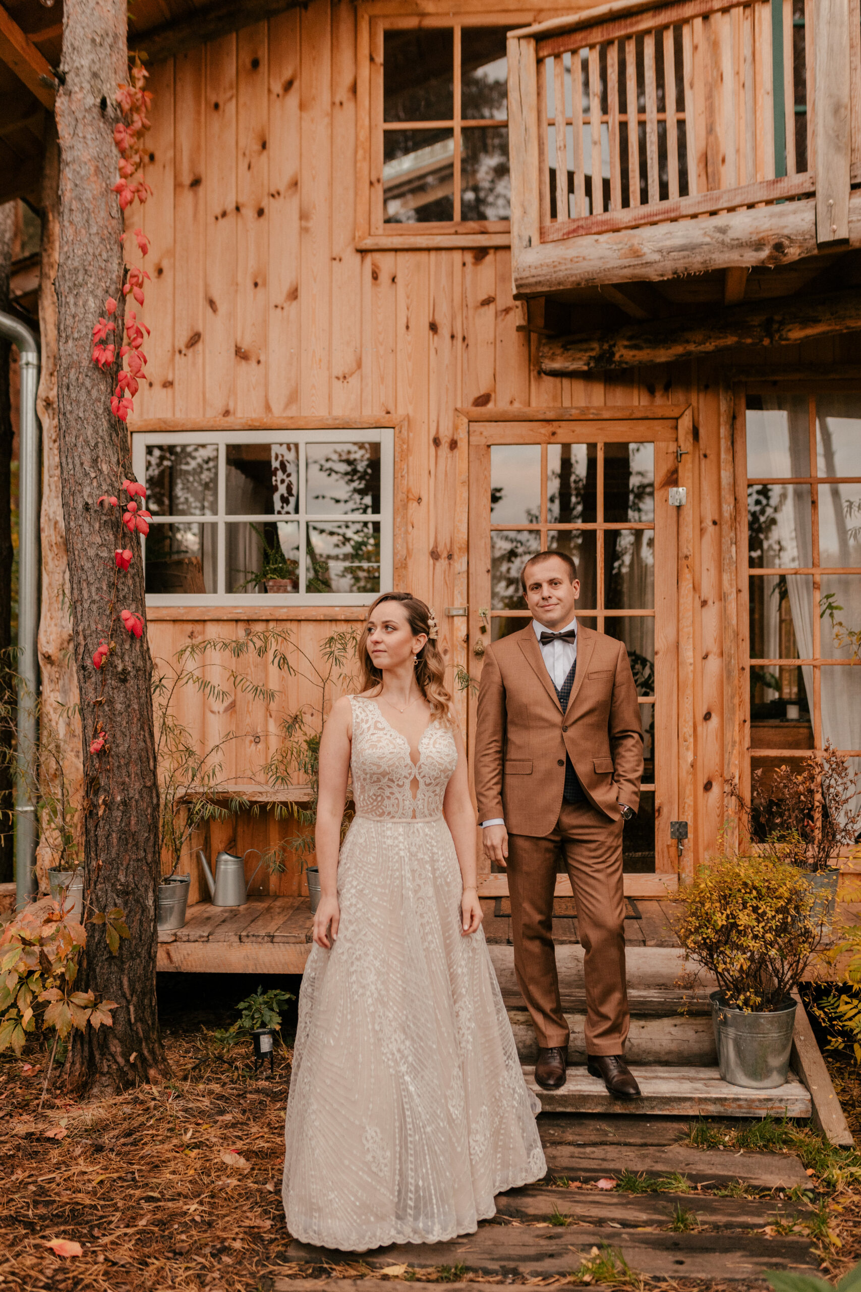Jak już wspomniałam, te czerwienie, żółcie i pomarańcze na liściach to istne piękno. Super wkomponowało nam się w kadry i stylizacje Pary Młodej. Jestem totalną fanką natury i jak widzę takie śliczne zjawiska – jestem zachwycona, co więcej – fotografuję wtedy jak szalona :).