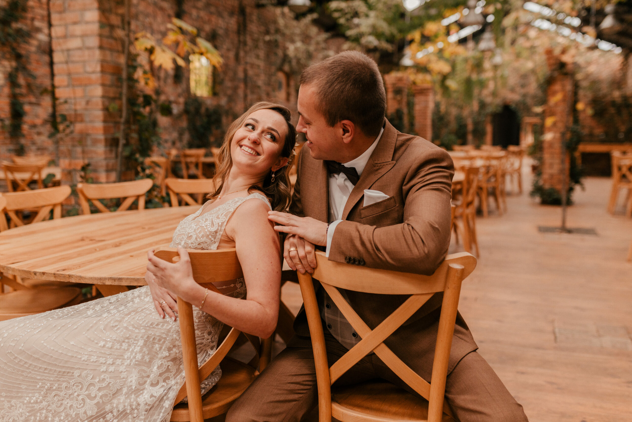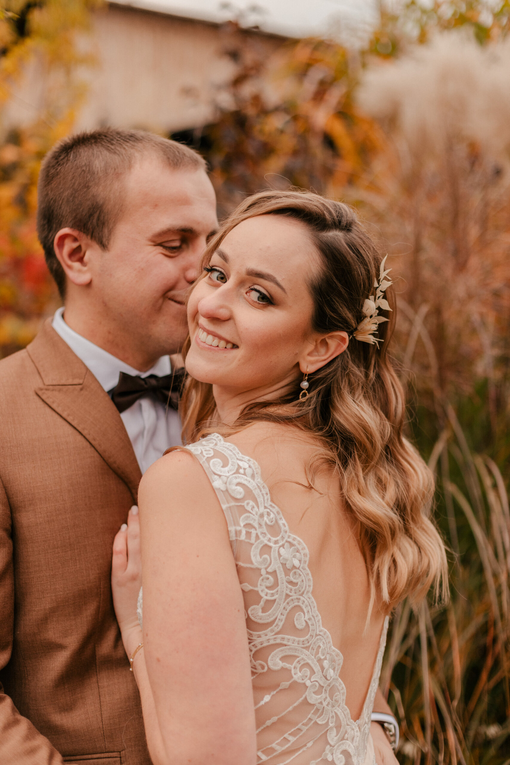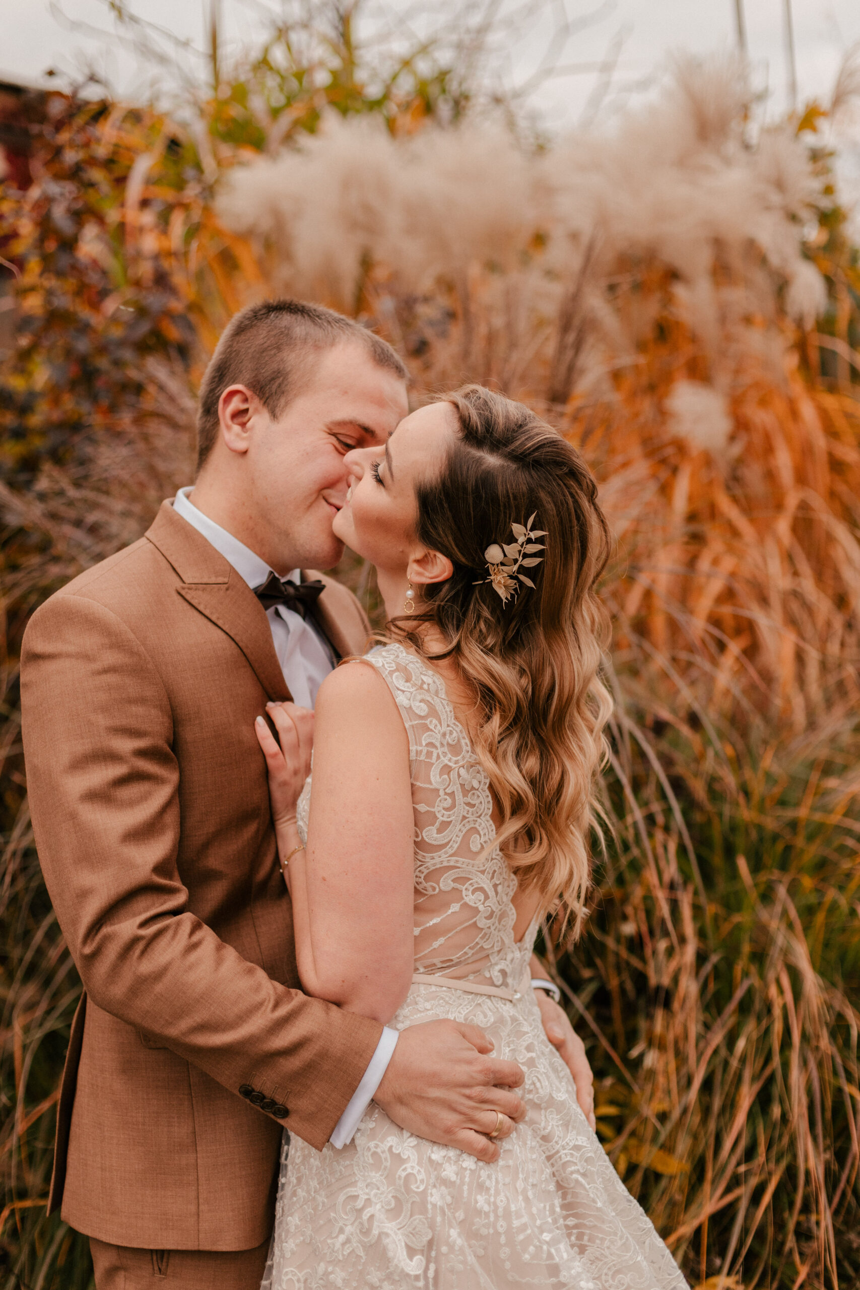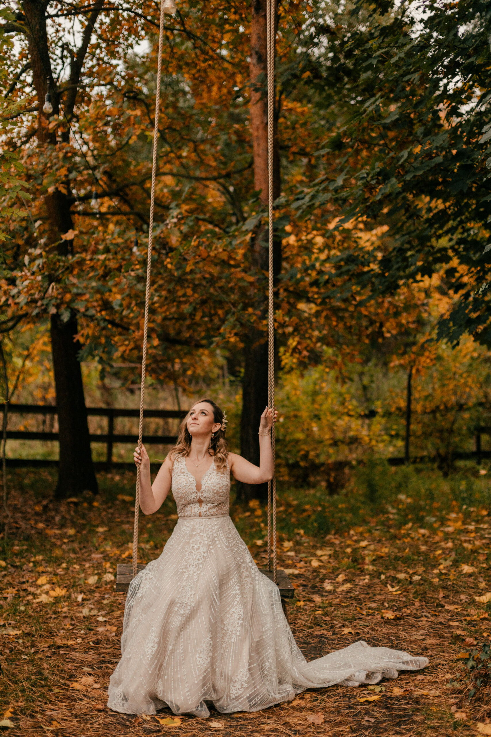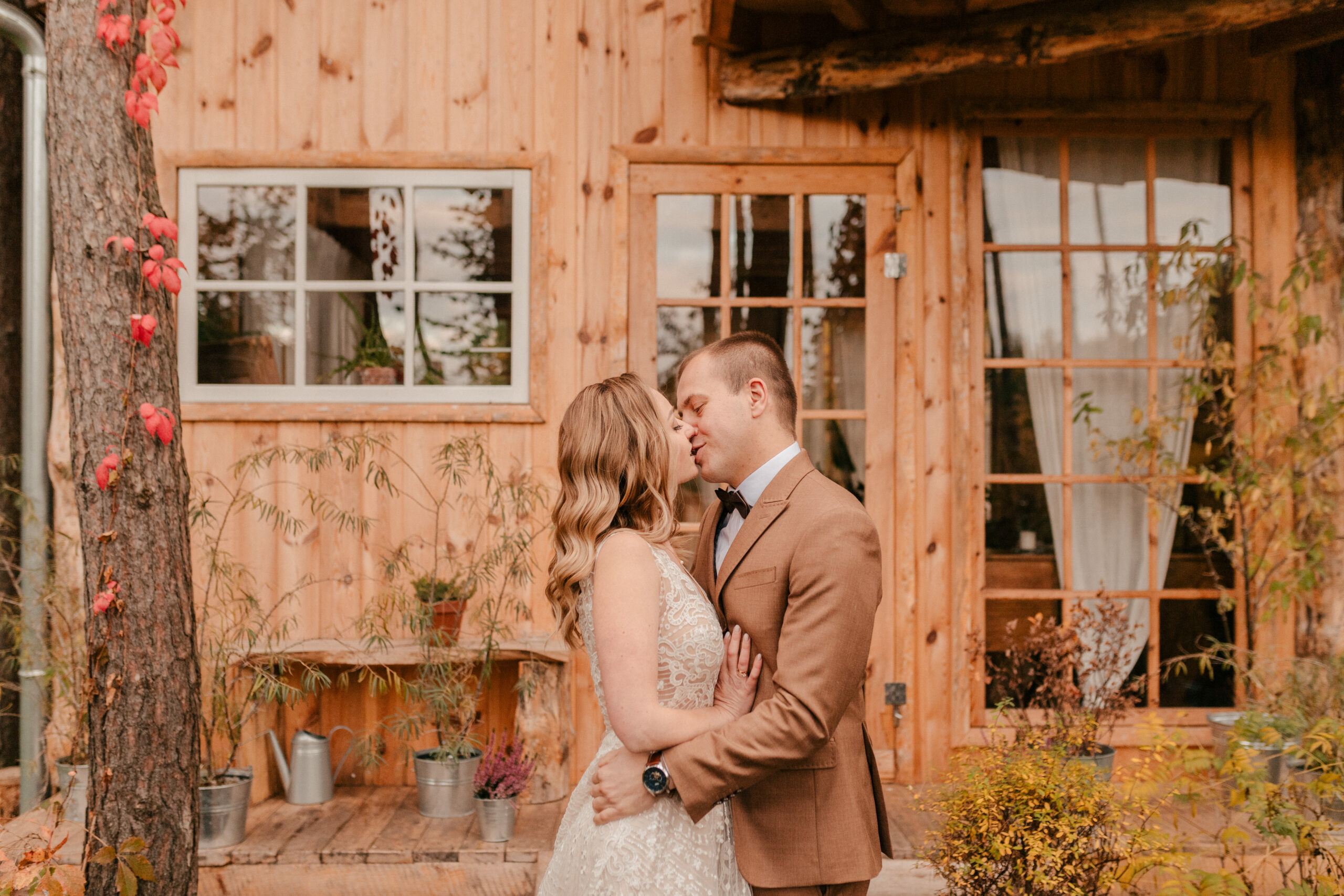 Jak już wspomniałam, te czerwienie, żółcie i pomarańcze na liściach to istne piękno. Super wkomponowało nam się w kadry i stylizacje Pary Młodej. Jestem totalną fanką natury i jak widzę takie śliczne zjawiska – jestem zachwycona, co więcej – fotografuję wtedy jak szalona :).