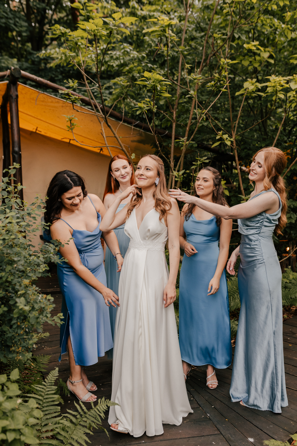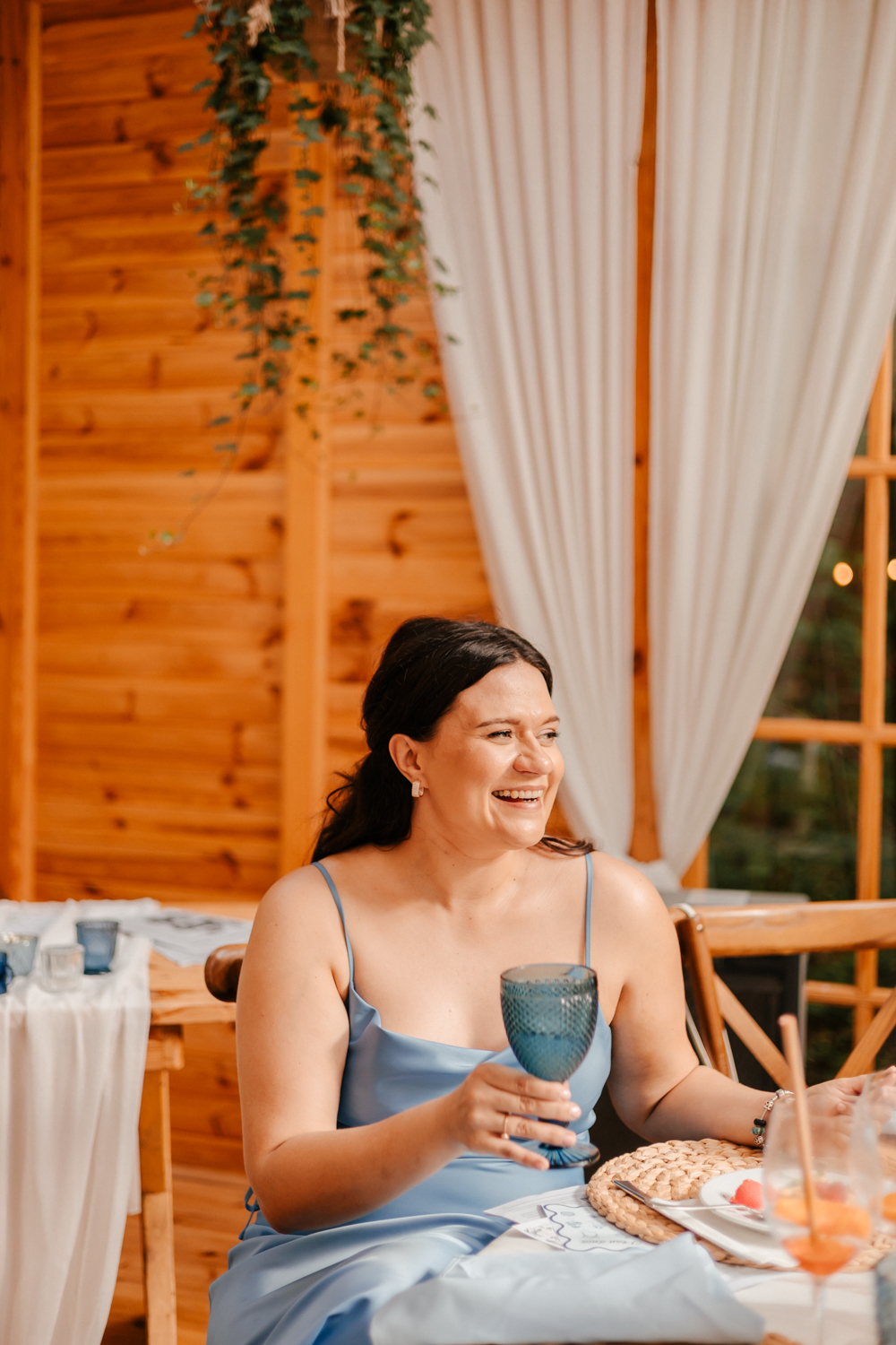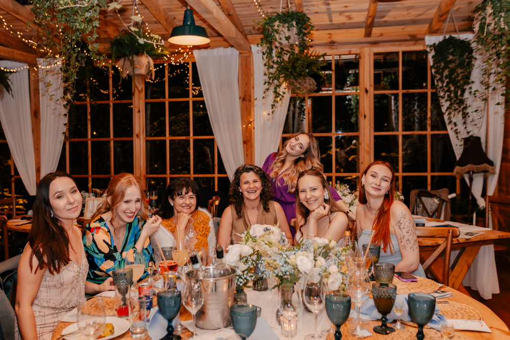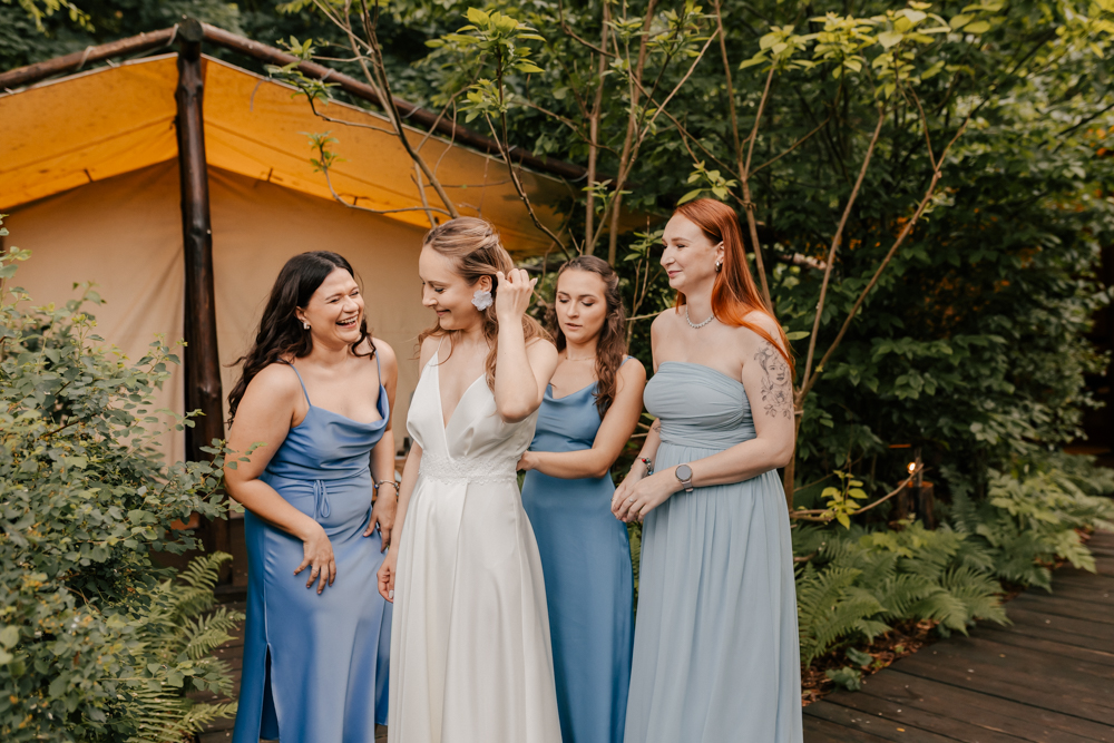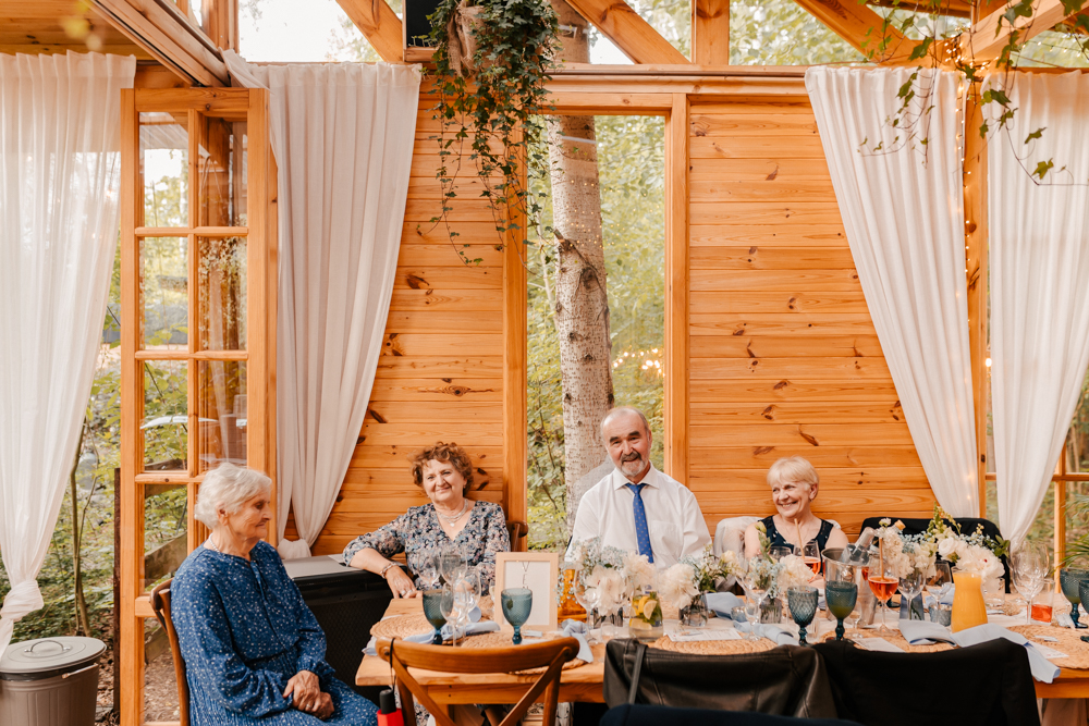 Towarzystwo leśnych przyjaciół – drzew – to totalnie piękna aura, dodająca spokoju i niepowtarzalności chwilom. Do tego kameralne przyjęcie w uroczej szklarni, spokojne przygotowania Pary Młodej w jurtach, to wszystko razem wzięte dało po prostu charakter SLOW wesela, którego jestem zwolenniczką.
