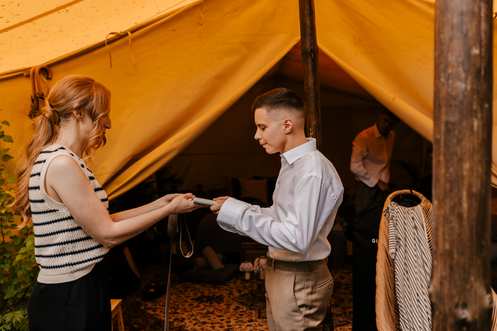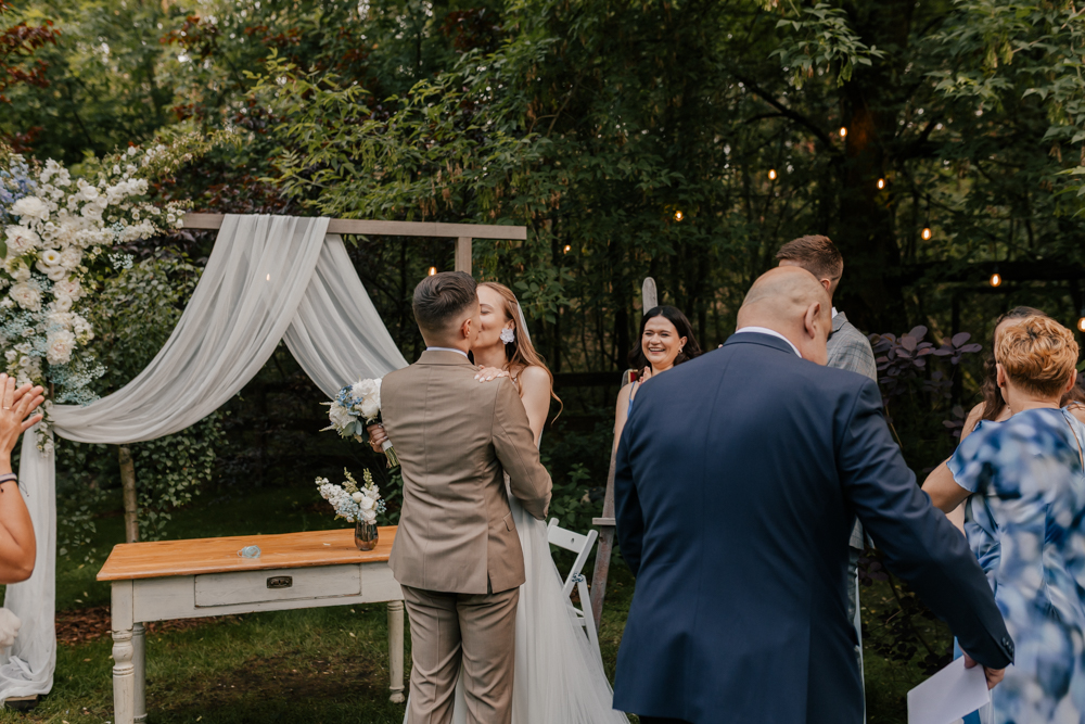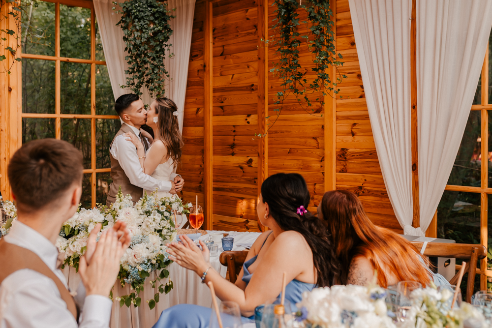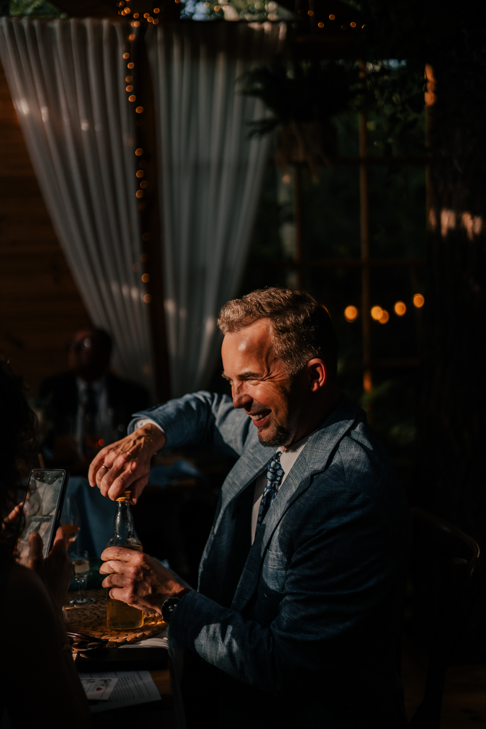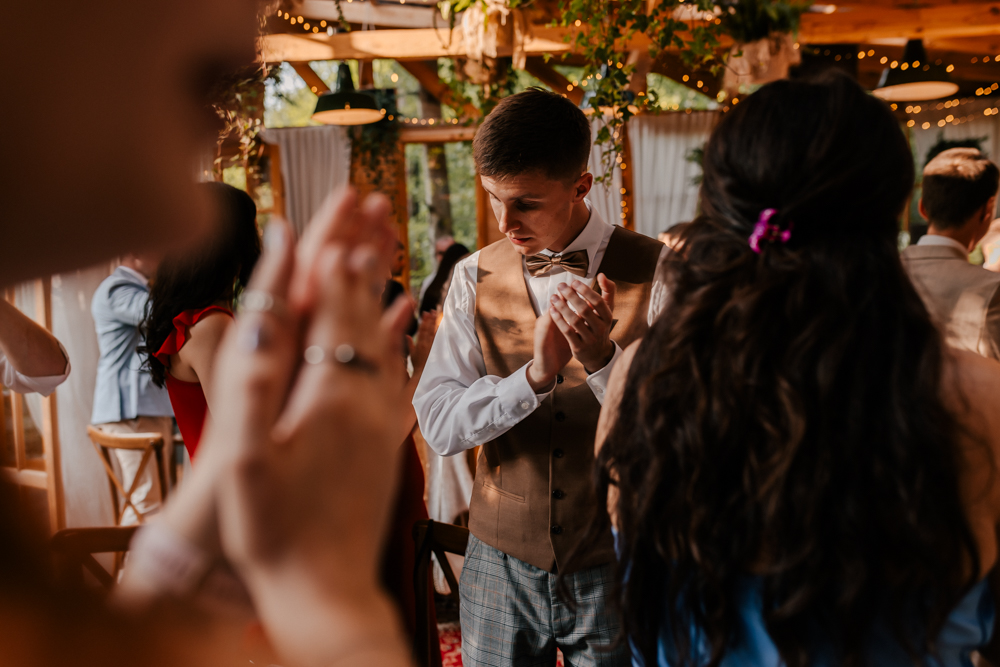 Towarzystwo leśnych przyjaciół – drzew – to totalnie piękna aura, dodająca spokoju i niepowtarzalności chwilom. Do tego kameralne przyjęcie w uroczej szklarni, spokojne przygotowania Pary Młodej w jurtach, to wszystko razem wzięte dało po prostu charakter SLOW wesela, którego jestem zwolenniczką.