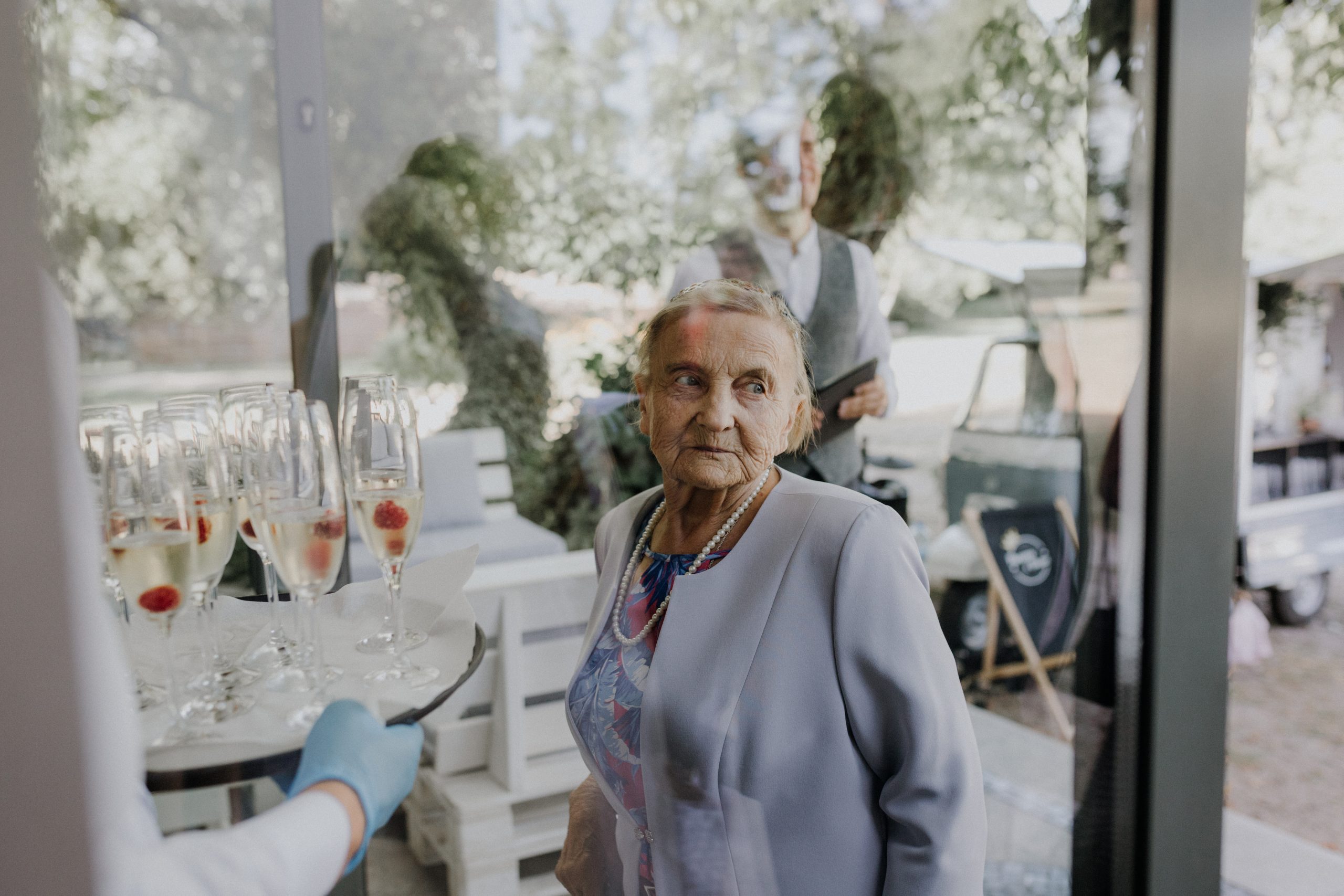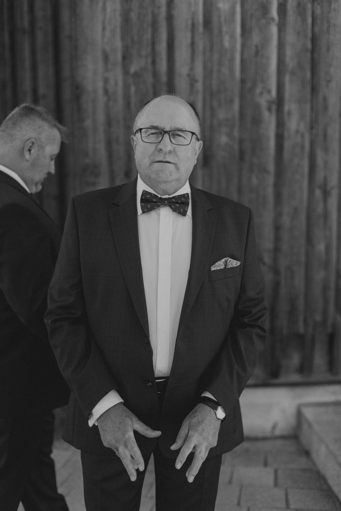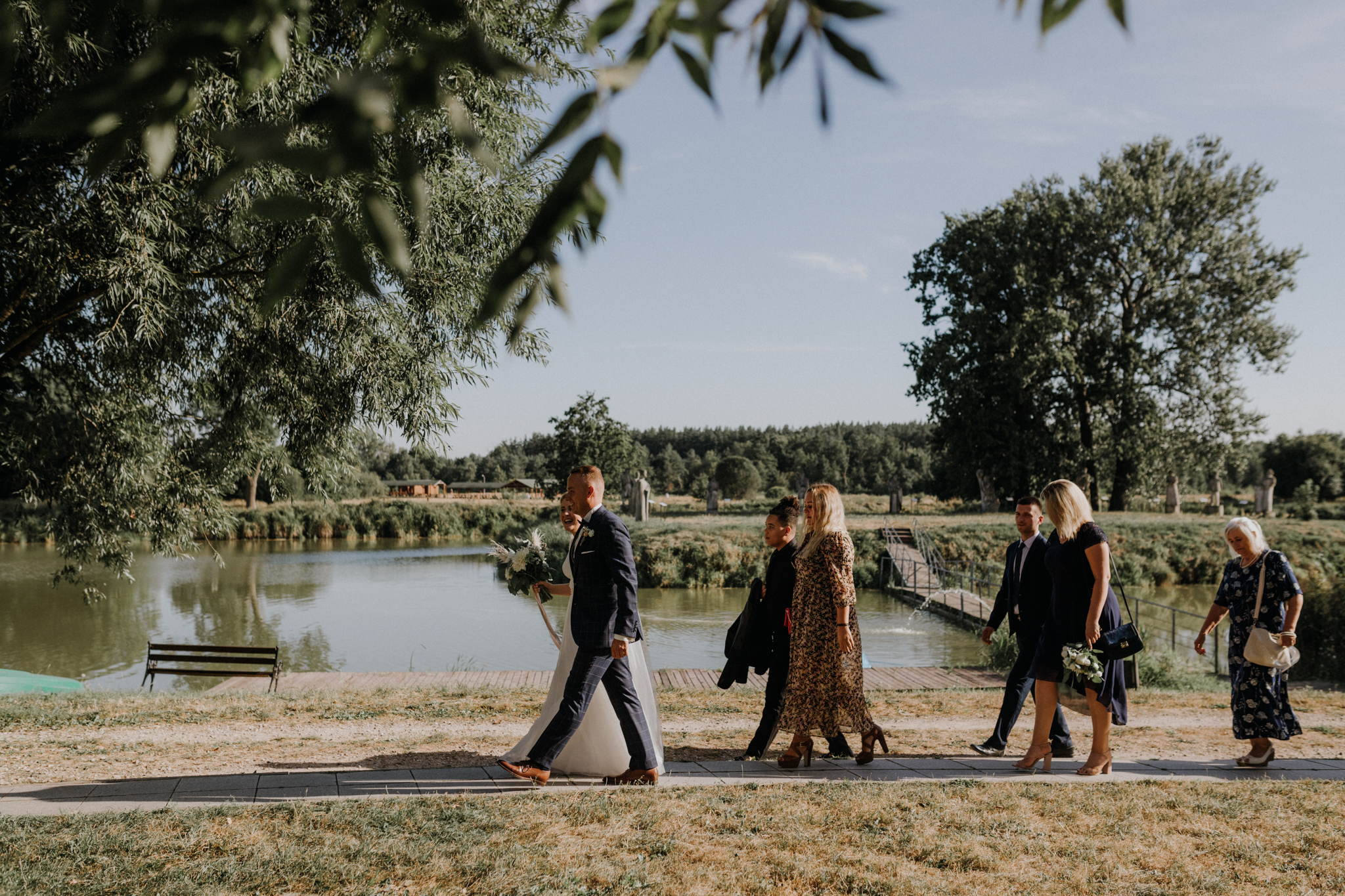 To była upalna, sierpniowa sobota. Pojechałam do Folwarku w Łochowie, gdzie miał być ślub i przyjęcie weselne Asi i Michała. Oboje przygotowywali się do tego momentu w dwóch pokojach, po różnych stronach korytarza, w asyście swoich rodziców i dziadków – ale to było urocze! Kursowałam więc między jednym, a drugim pokojem z aparatami. Udało mi się nawet skoczyć przed ślubem do kościoła, w którym się pobierali bo to oddalony o kilkaset metrów mały, drewniany i klimatyczny kościółek na terenie Folwarku.