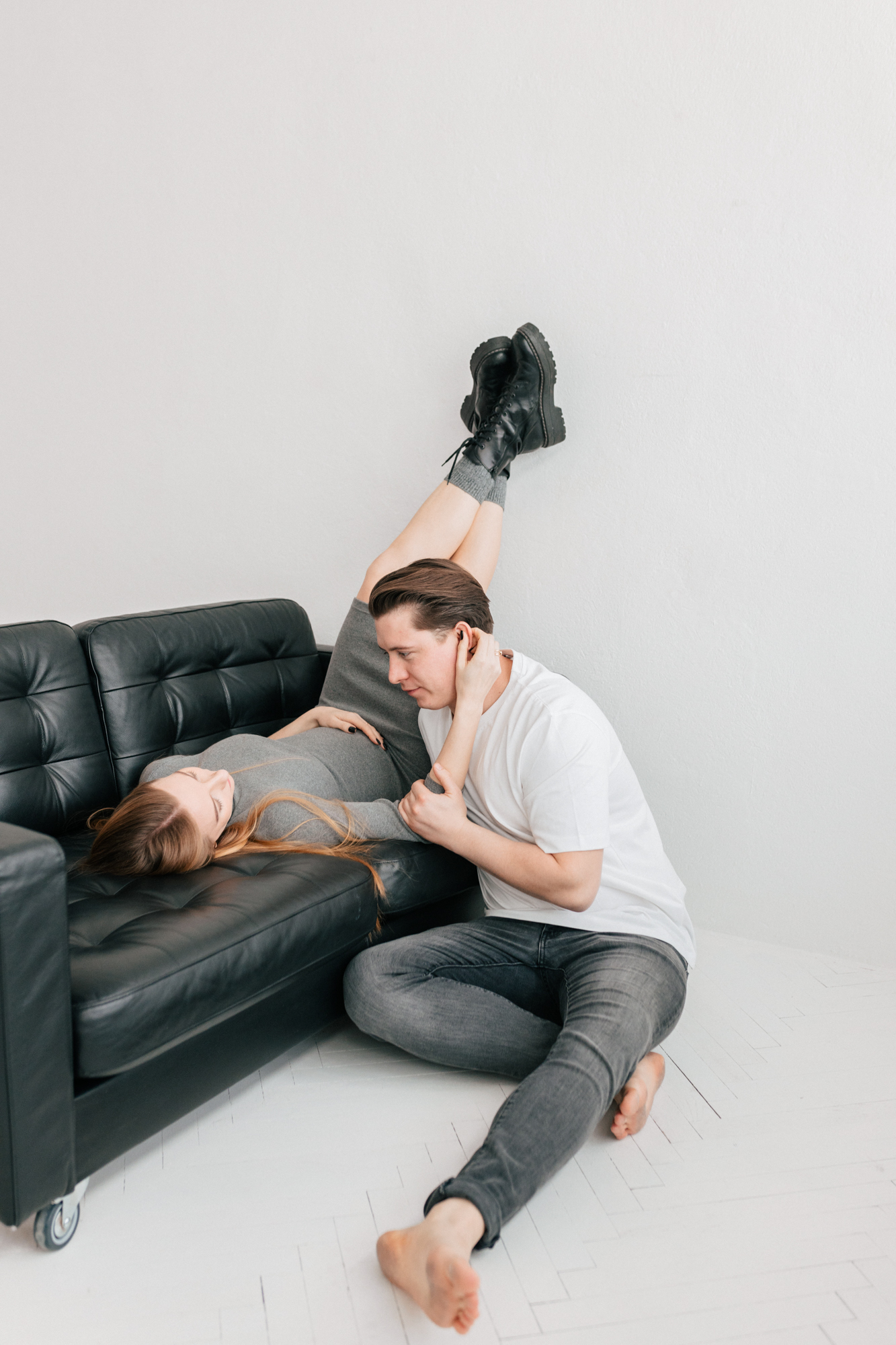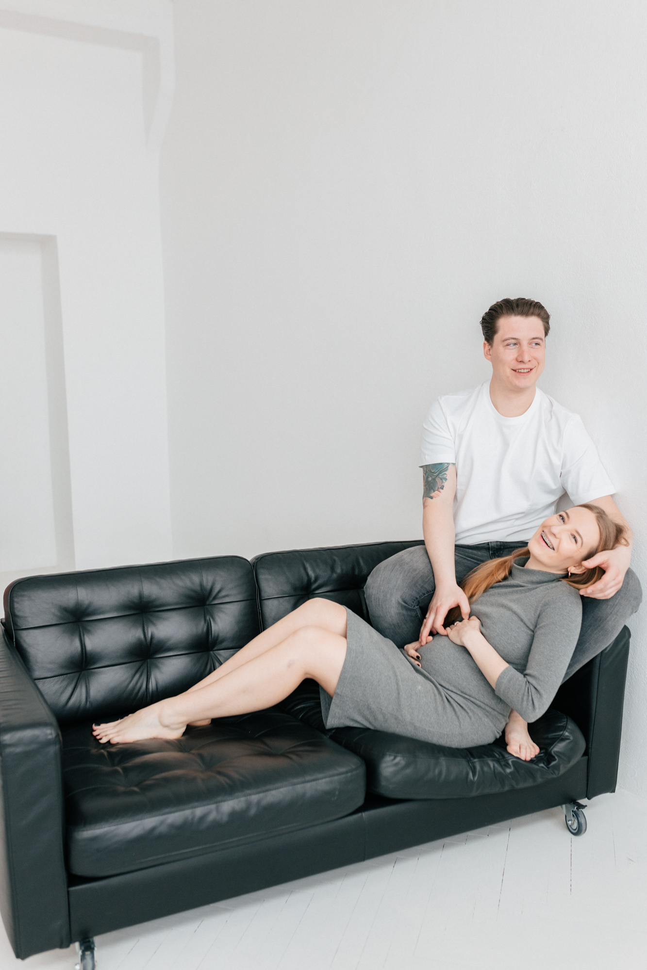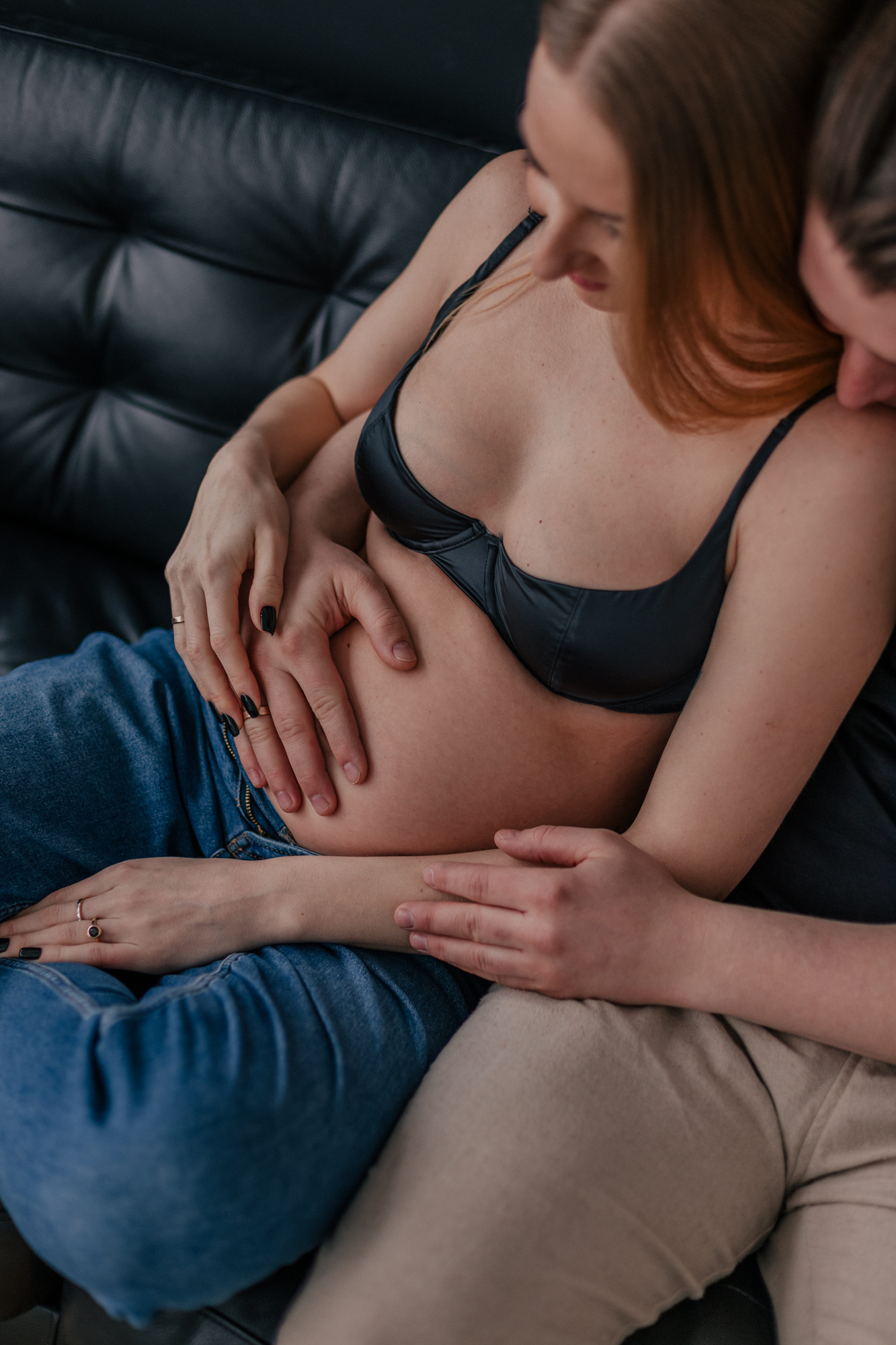 W związku z tym, że była jeszcze zima (taka nie sprzyjająca zdjęciom na zewnątrz;)), zrobiliśmy sesję brzuszkową w warszawskim Studio Taśma, a noworodkową w domu.