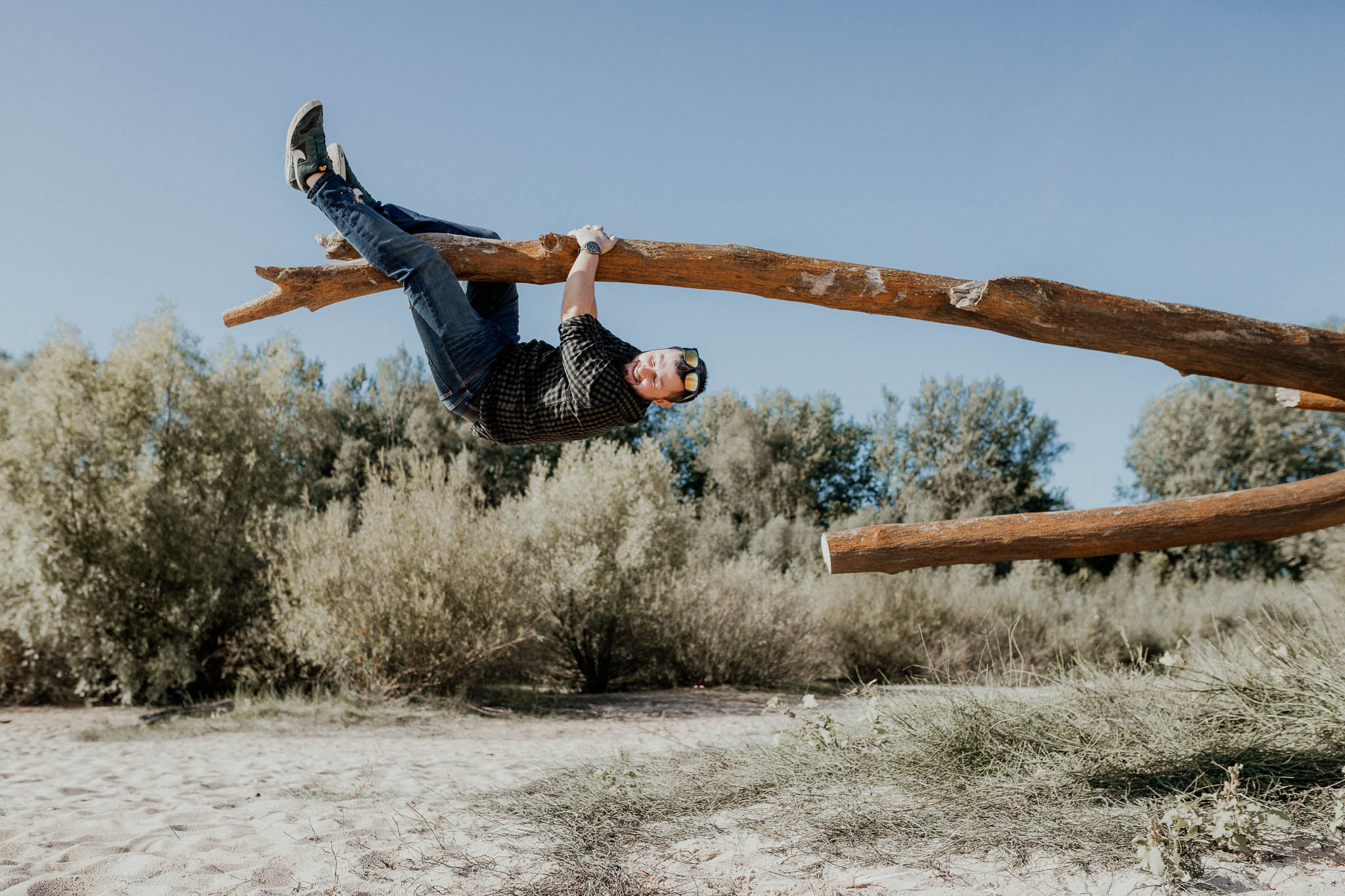 Kasia i Arek np. uwielbiają grać w planszówki, robić sobie żarty z czego tylko można i pielęgnować w sobie dziecko 😀 Nie mogło więc zabraknąć zdjęć na placu zabaw, a potem przy planszówkach na ich balkonie, z kocurem na kolanach.