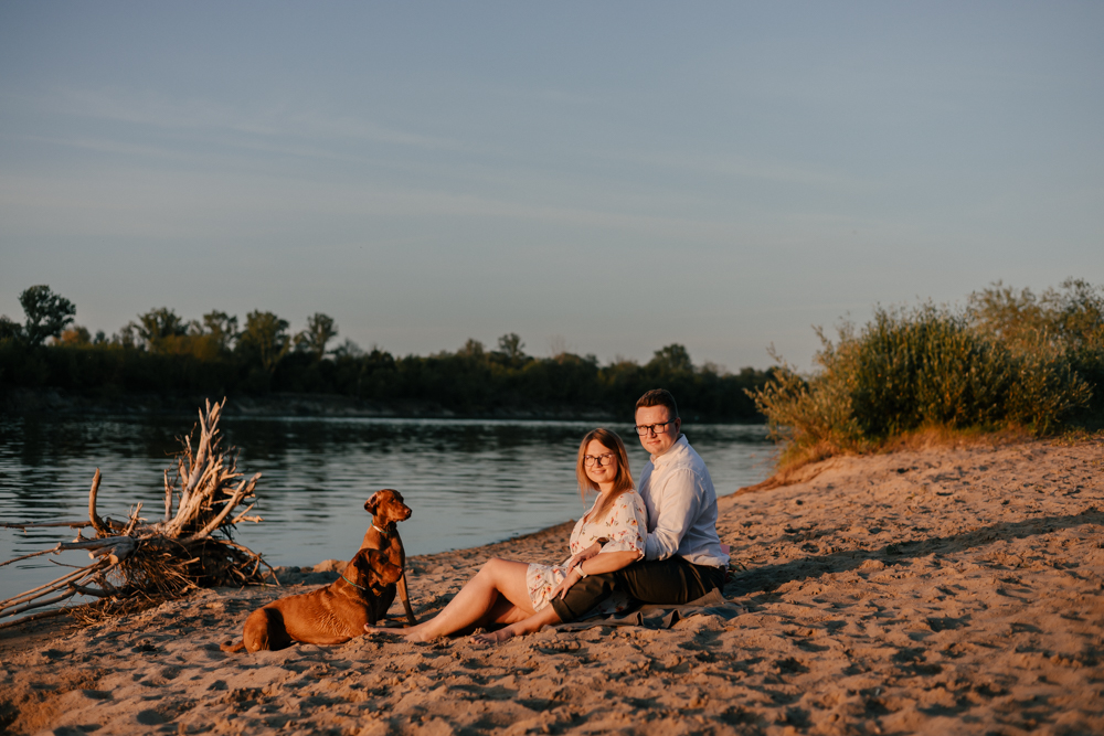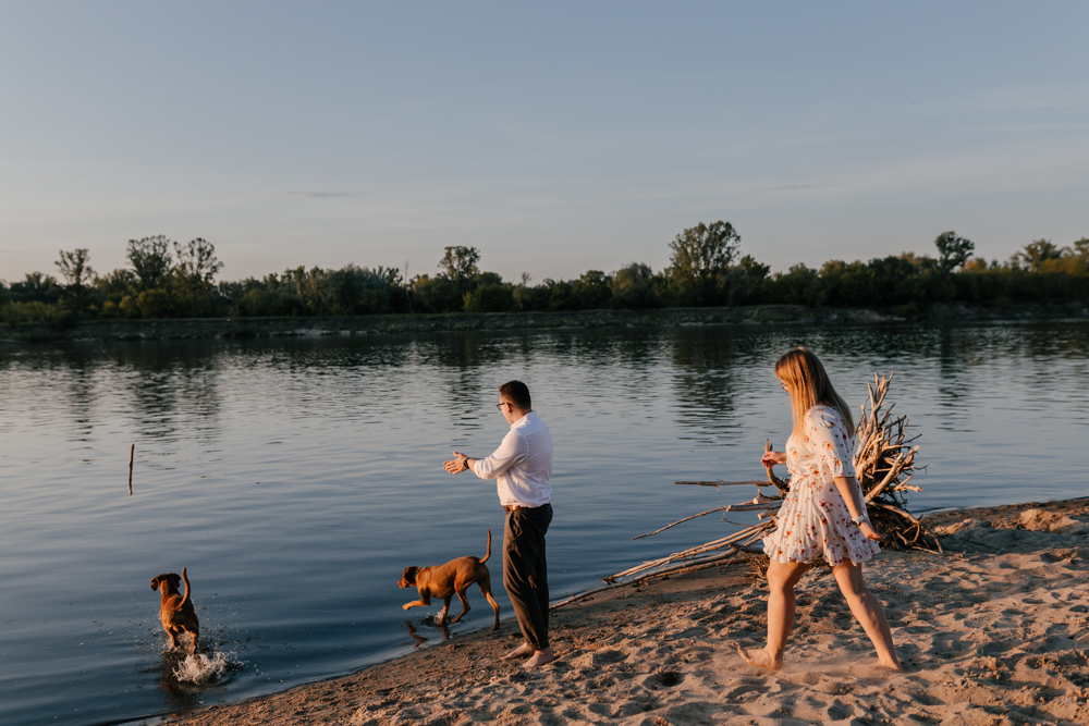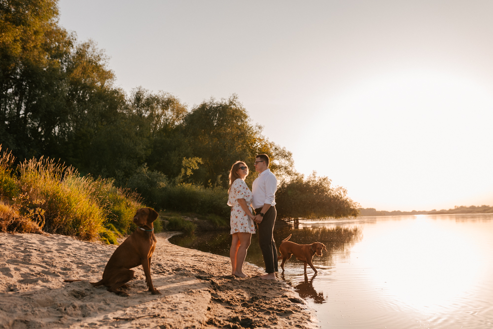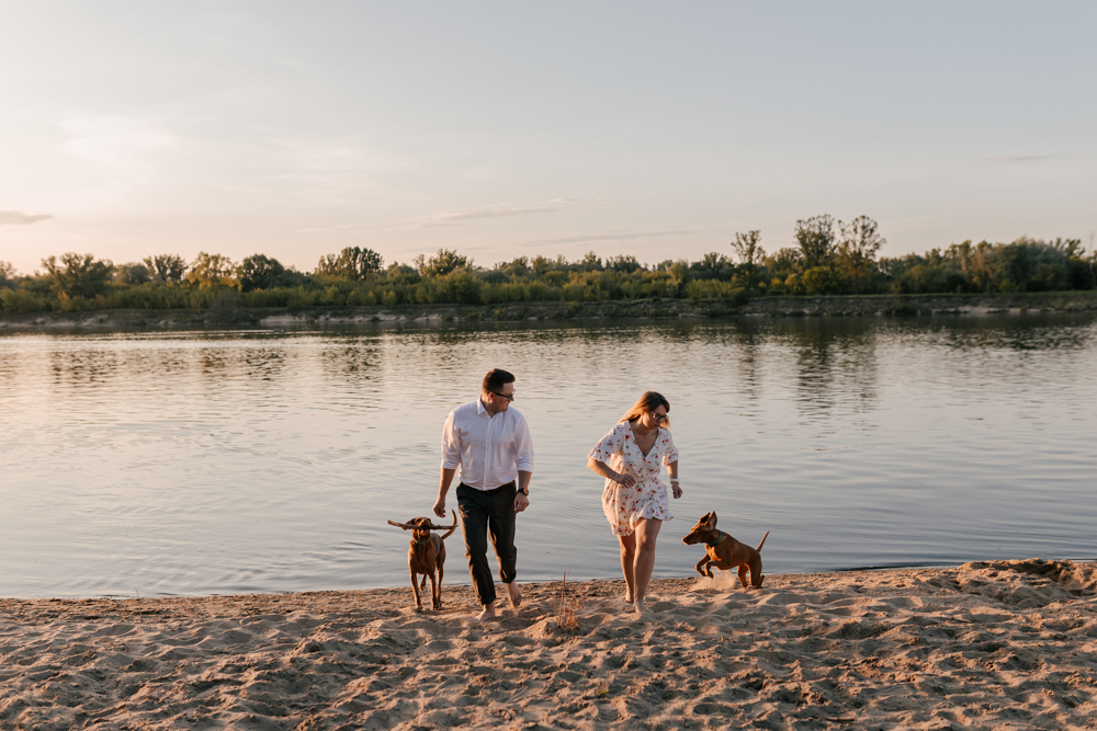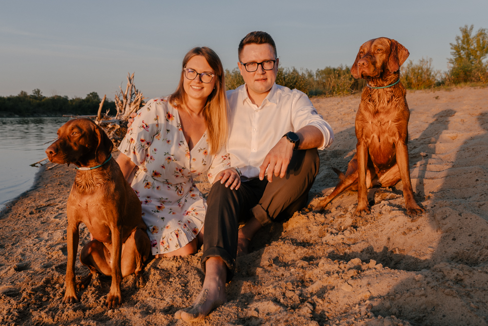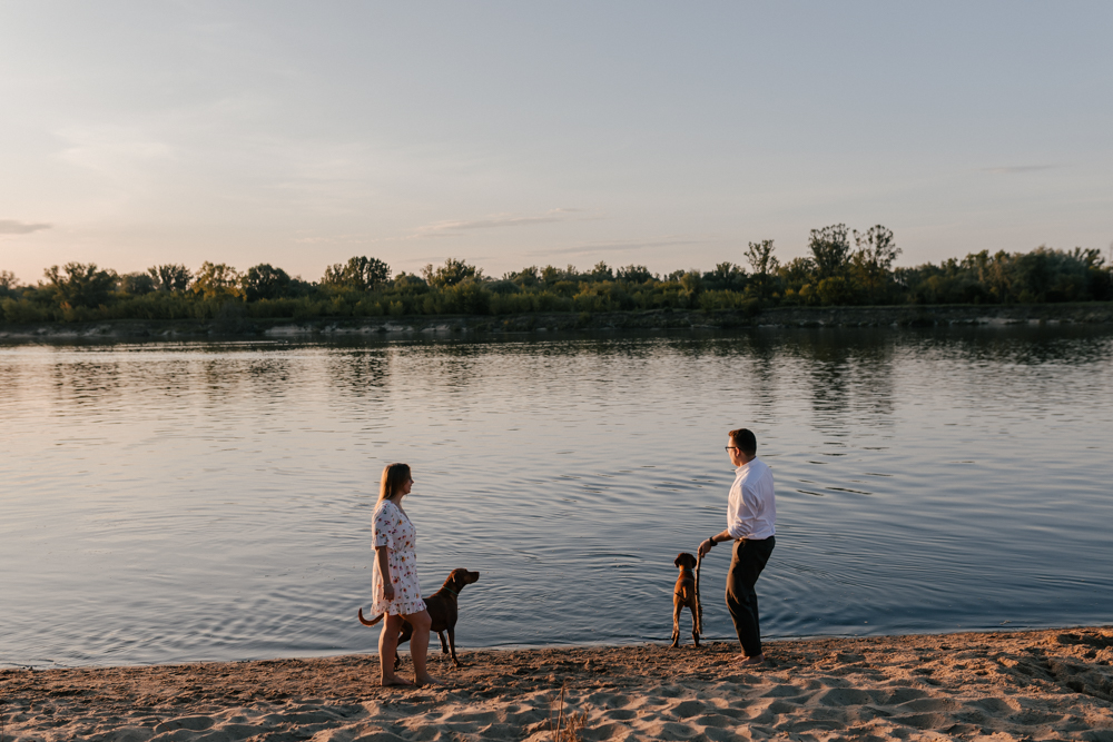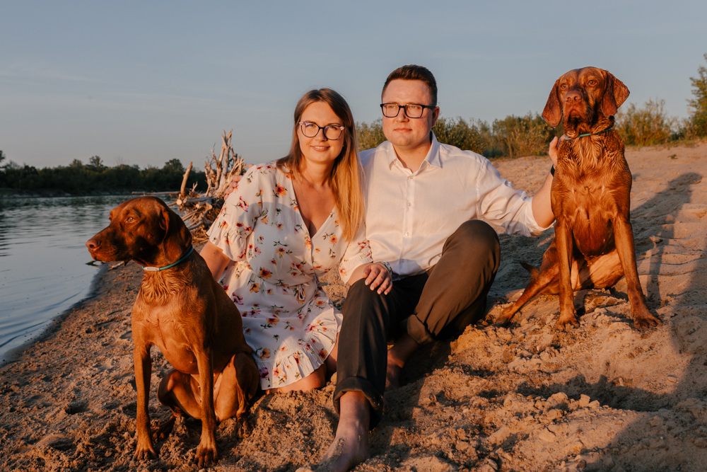 Hmm… sesja narzeczeńska dla psiarzy, z ich pieskami, to chyba najlepsze kombo, jakie mogę sobie wyobrazić! Do tego lato, pusta plaża za miastem i piękny zachód słońca. Czy można chcieć czegoś więcej?:)