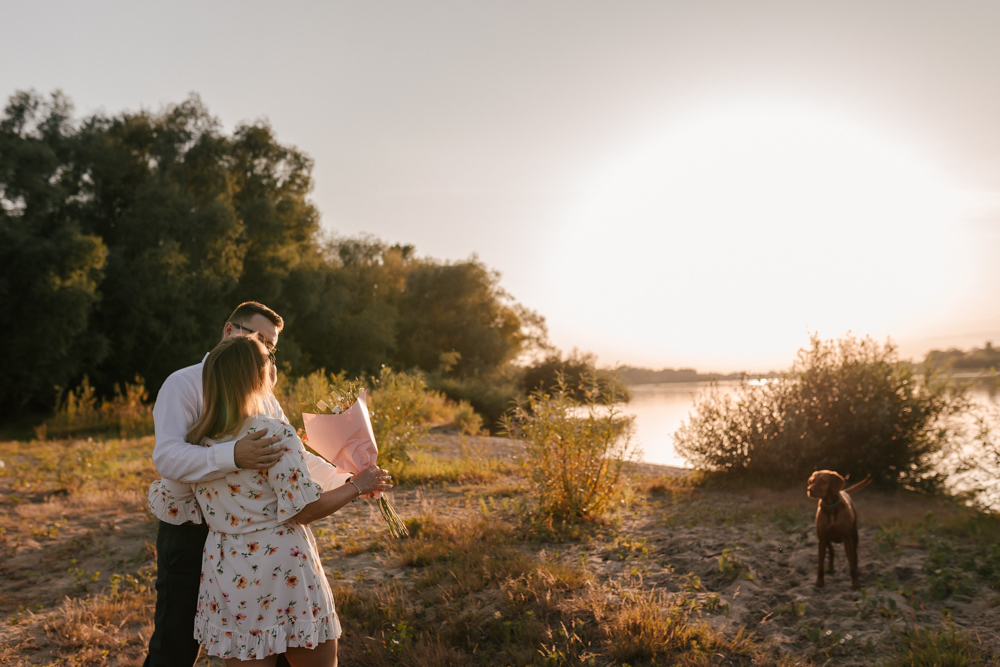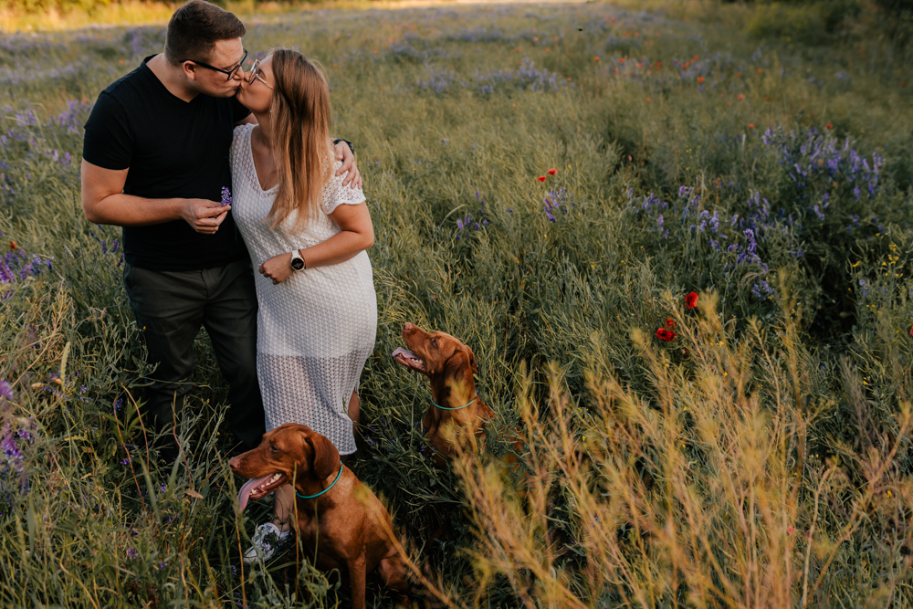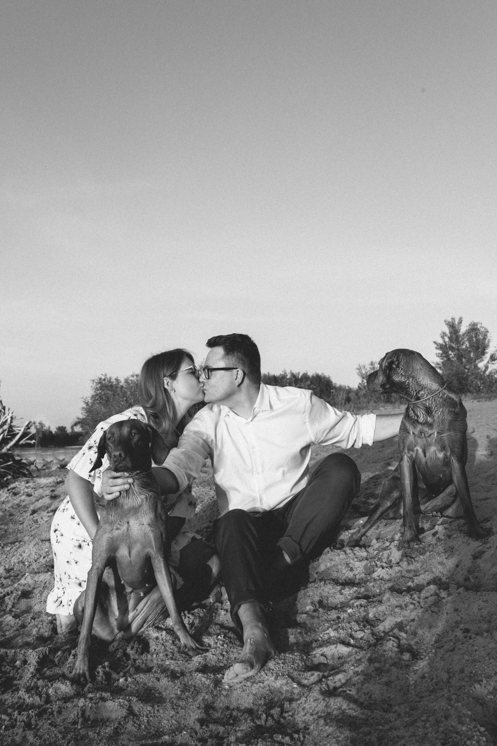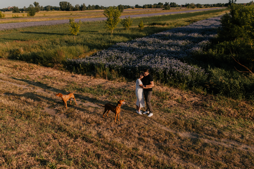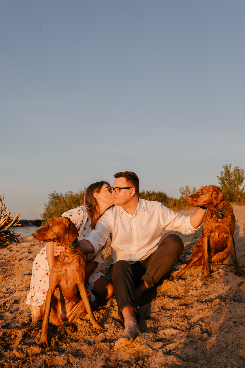 Hmm… sesja narzeczeńska dla psiarzy, z ich pieskami, to chyba najlepsze kombo, jakie mogę sobie wyobrazić! Do tego lato, pusta plaża za miastem i piękny zachód słońca. Czy można chcieć czegoś więcej?:)