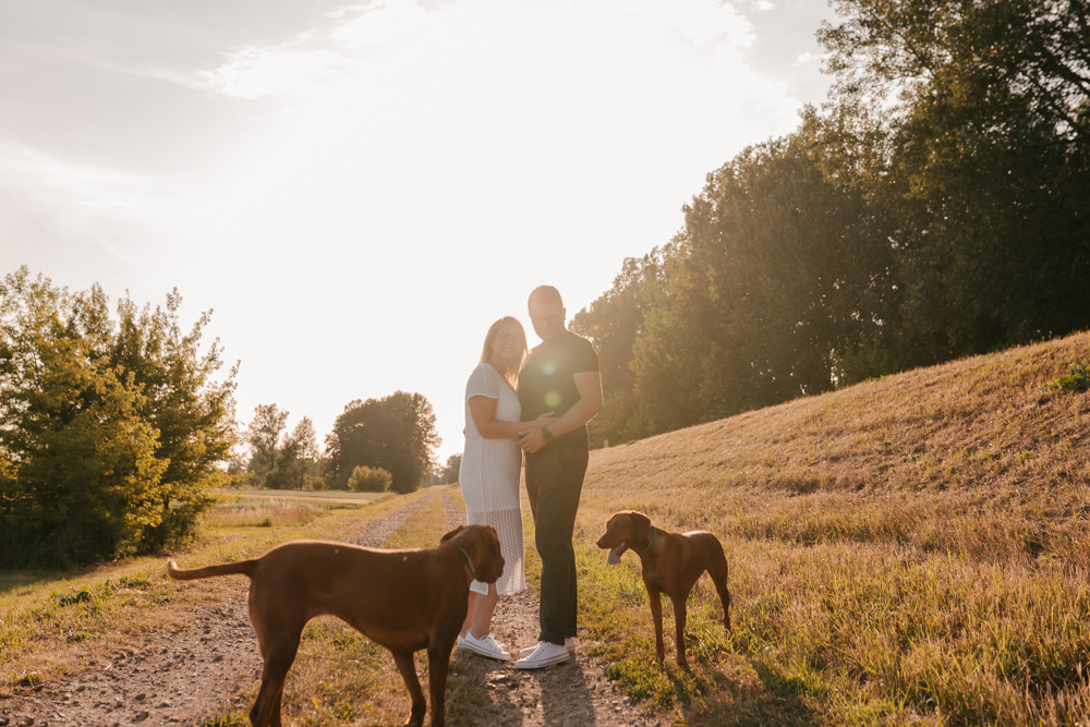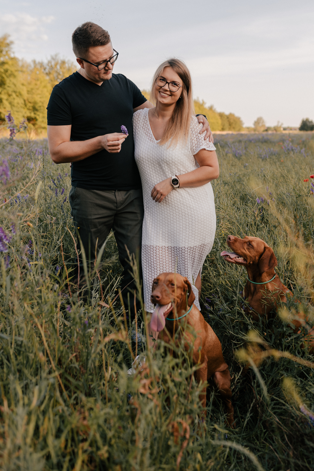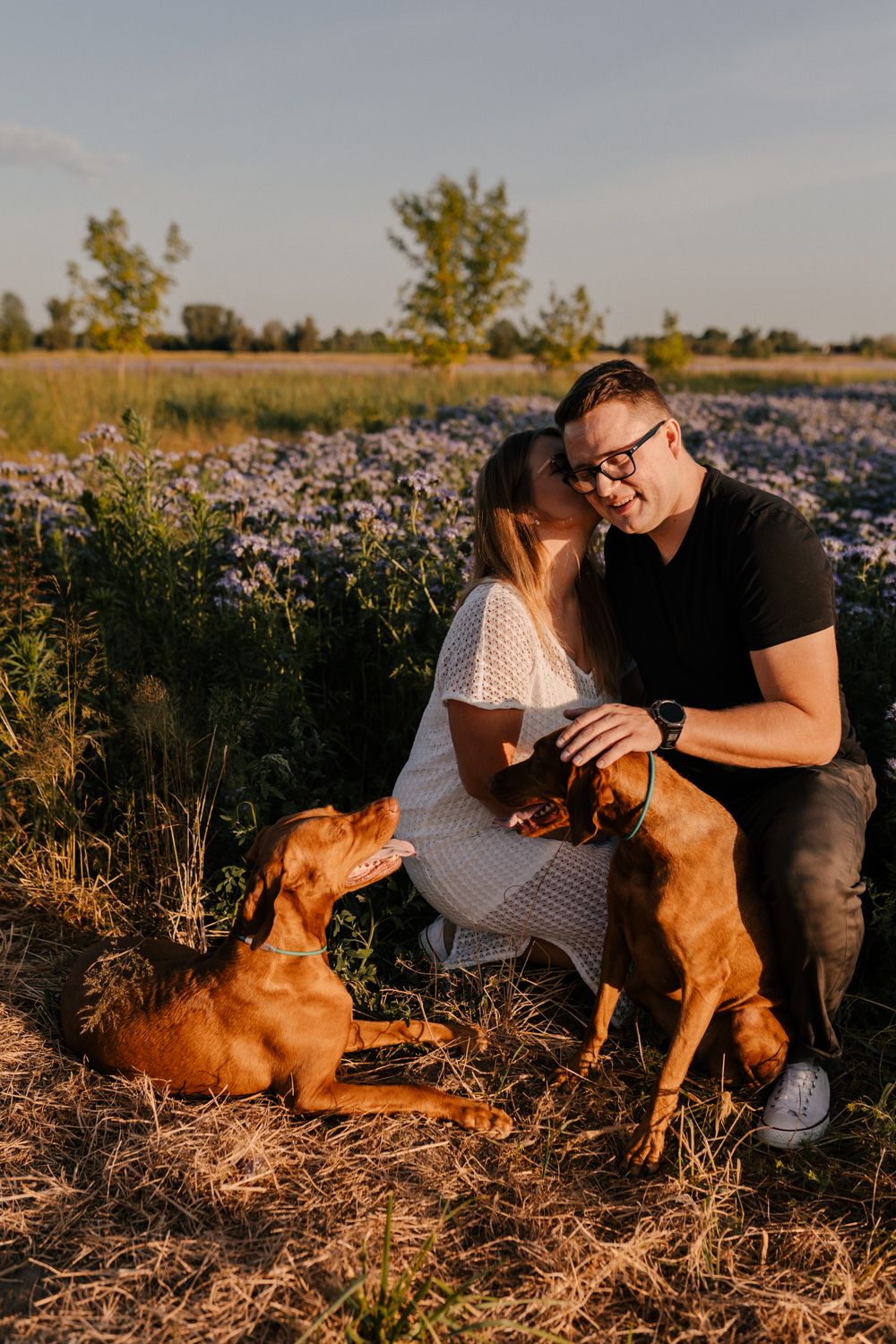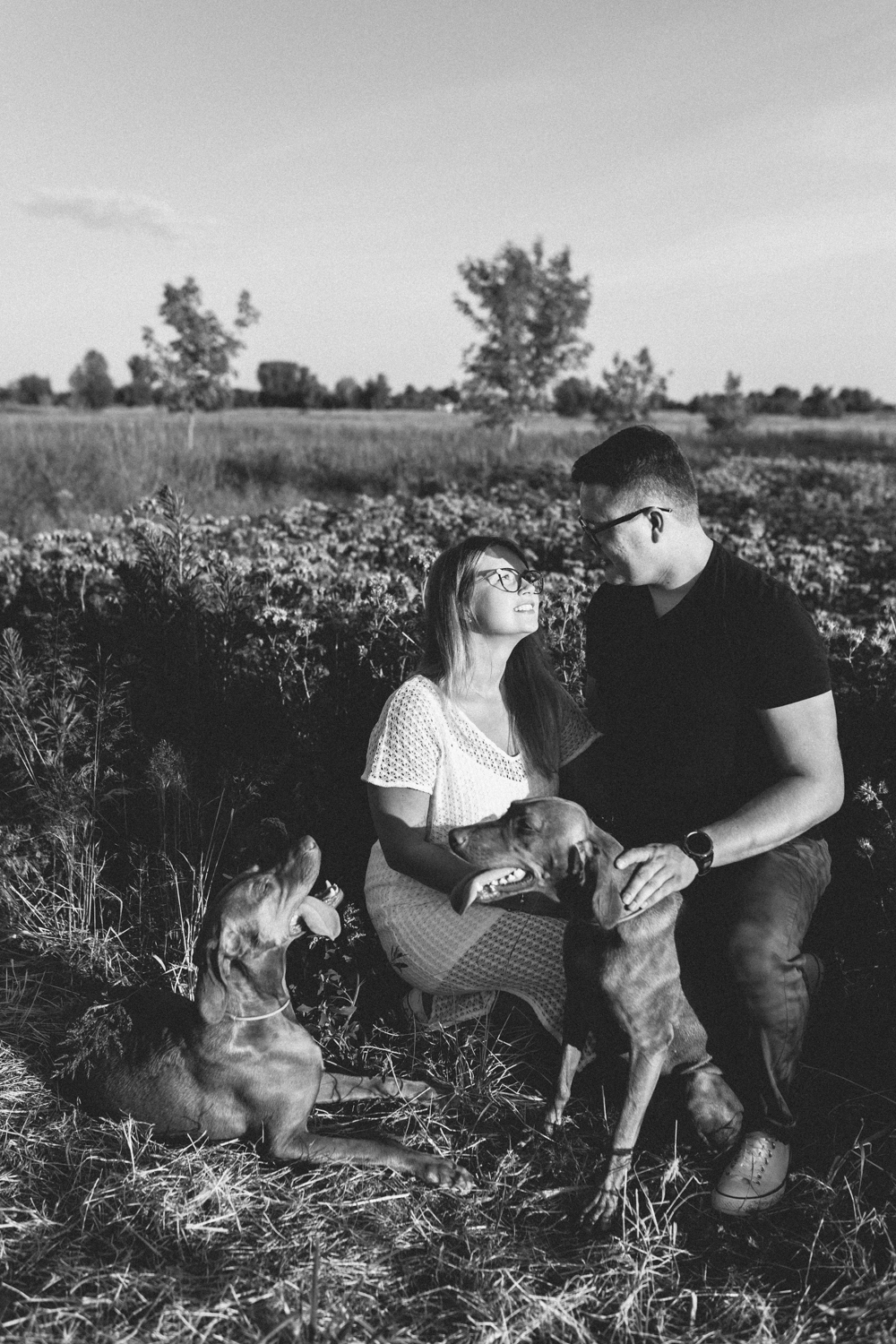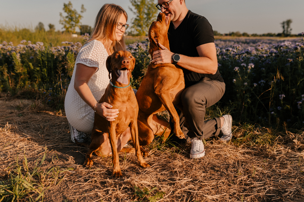 Hmm… sesja narzeczeńska dla psiarzy, z ich pieskami, to chyba najlepsze kombo, jakie mogę sobie wyobrazić! Do tego lato, pusta plaża za miastem i piękny zachód słońca. Czy można chcieć czegoś więcej?:)